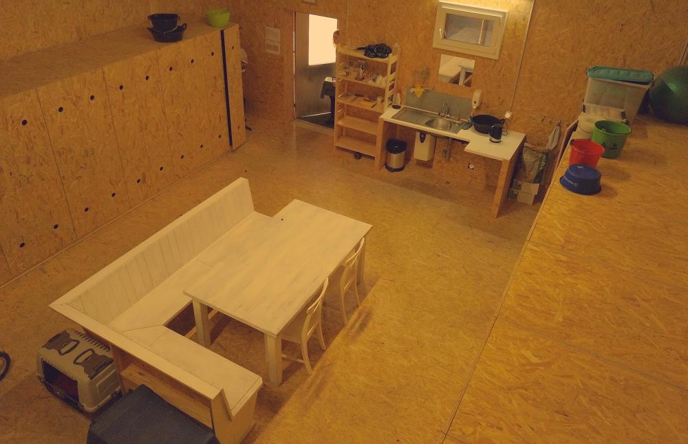 Es hat für jeden Stallteil ein beheiztes Stübli mit warmem Wasser, Wasserkocher, und ein Kühlschrank. Im alten Stallteil befindet sich eine Toilette.